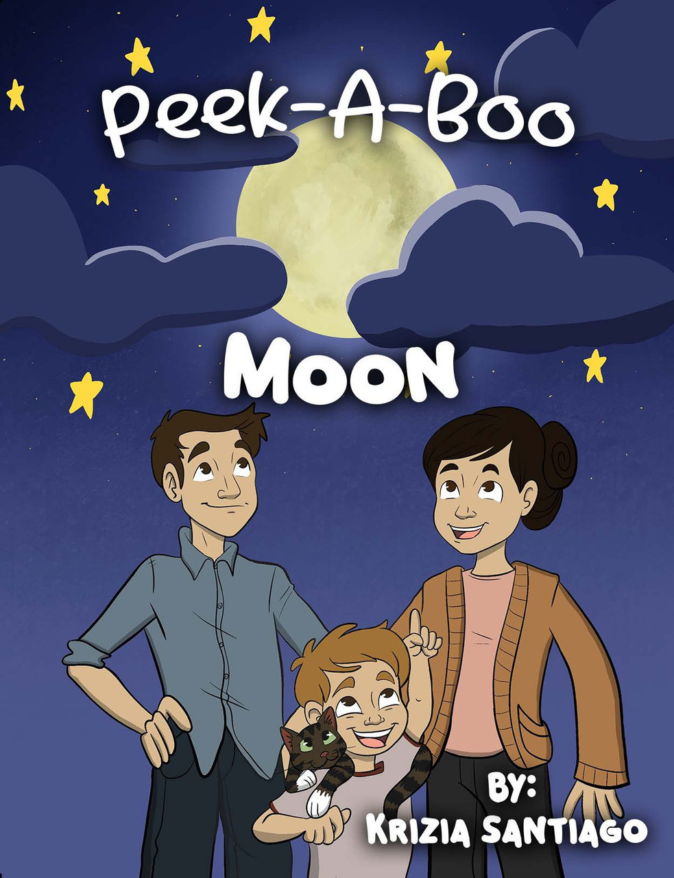 Krizia Santiago is a wife and mother of two children. Her family loved adventure and every chance they get, she and the family is out hiking, playing games, going to the beach, or enjoying the outdoors anyway they can. Krizia's inspiration for Peek-A-Boo moon came from her children's sense of wonder and curiosity. She dedicates this book to both of her children, her niece and nephew, the other kids in her family, and all the children in the world.