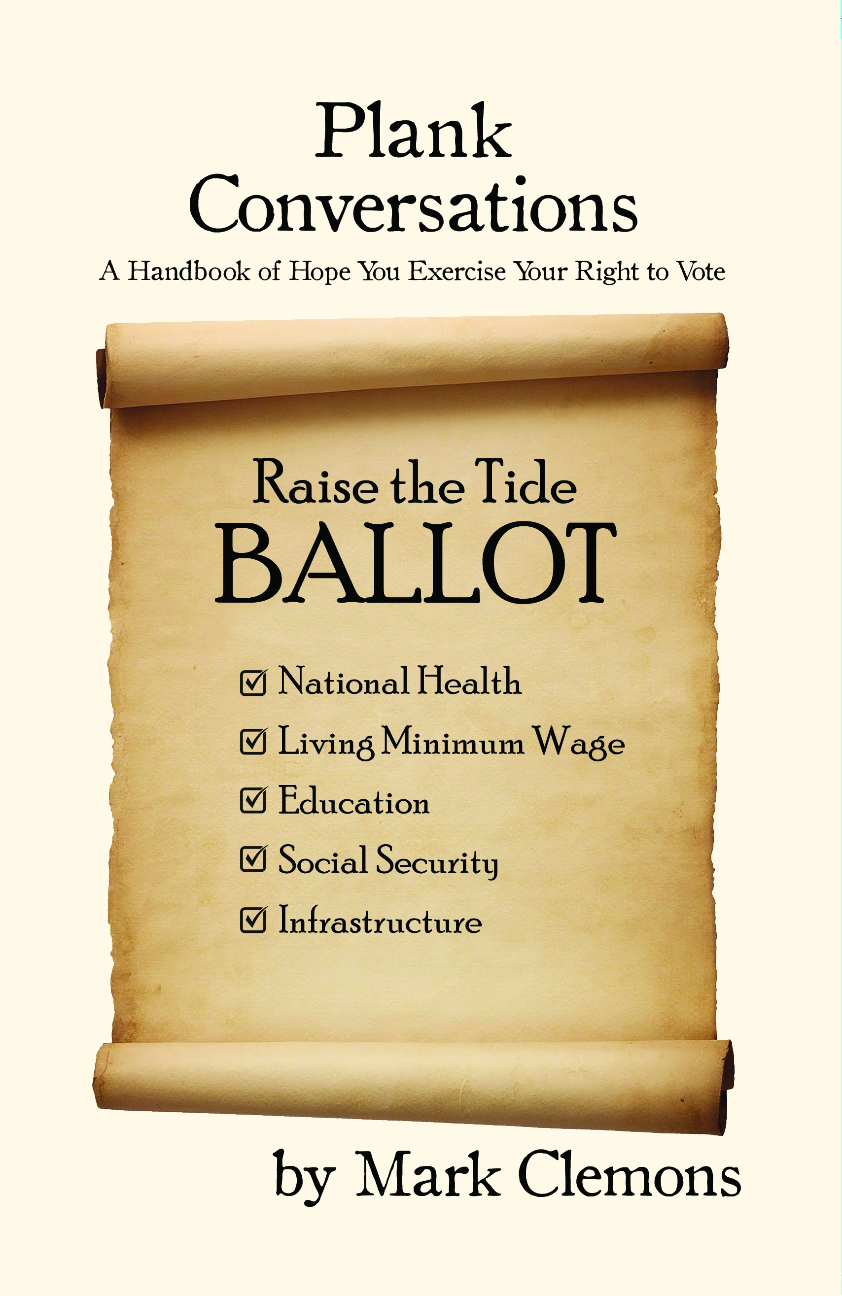 Plank Conversations guides the discussion of what most of the younger generations, millennials and Gen Z, see as major issues in the way the United States is run today. They are over encumbered with student loan debt, the disasters of climate change, low minimum wage, outrageous medical expenses, and the struggles for acceptance for all, including minorities and members of the LGBTQ+ community. Mark Clemons provides insightful solutions to these issues, such as free education, national healthcare, a living minimum wage and using math and science for combating climate change and dealing with infrastructure. With his delightful sense of humor and strong arguments, Clemons makes one thing very clear: In order for change to be made, we must all get out and VOTE!