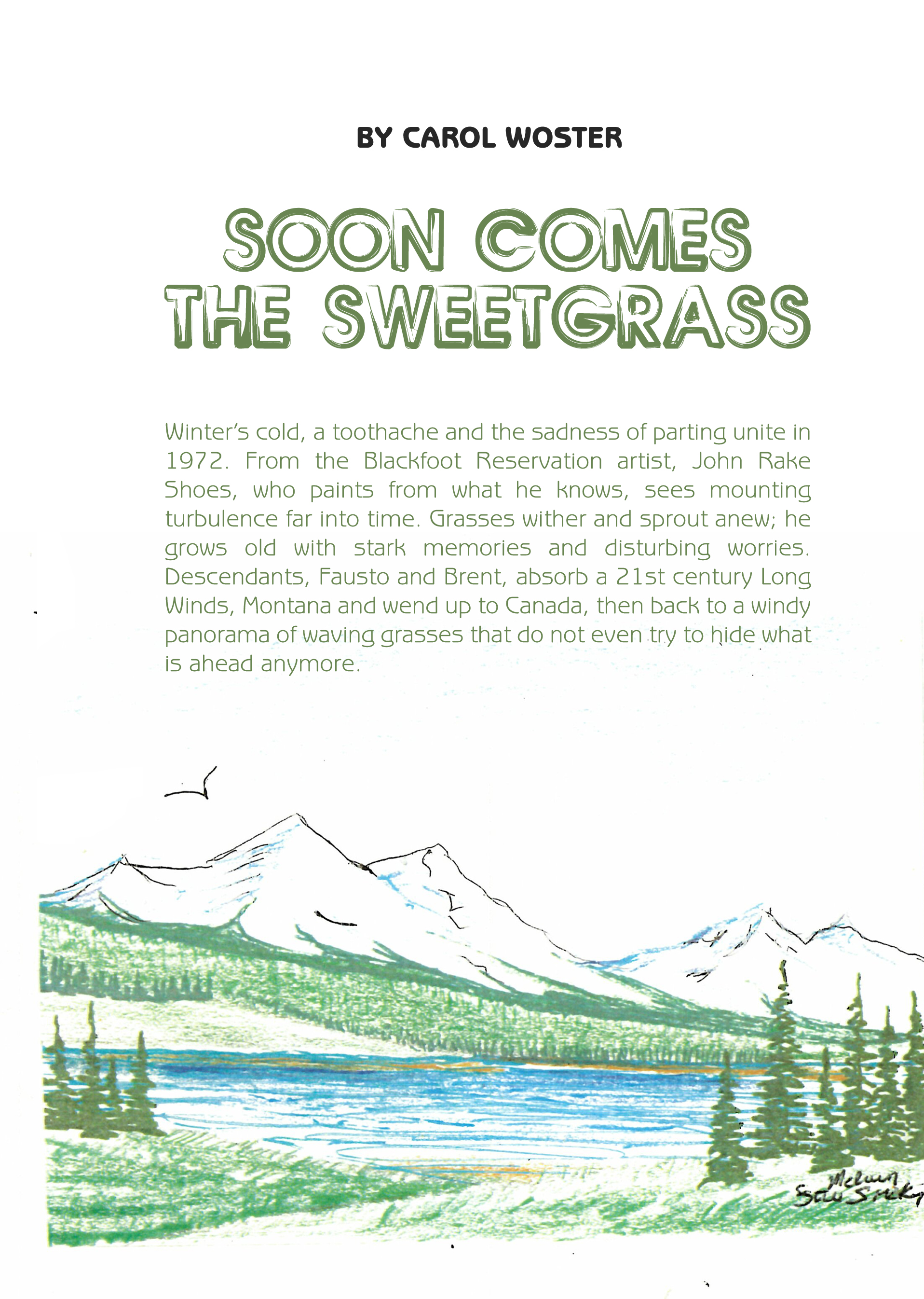 Great cowboy artist C.M. Russell knew well the serrated mountains of Glacier National Park, wide stretches of undulating prairies and colossal fame. A young Ace Powell helped blast for Going-to-the-Sun highway in the early 1930s. His mother had said, “Ace, you are always painting a picture.” Charley Russell died in 1926. Earlier they wove in and out of Apgar, later Ace babysat for Charley’s son. Ace also spent his sophomore year at high school in Browning. Another great Montana artistic genius, Bob Scriver, became a fast friend from those high school sophomore days. Ace would give some of his stretched window shades to young artists in the tribe. Rich genius poured out from these parts. Sweetgrass was a backdrop to daily and sacred activities. Fragrances intermingled with lives. Outsiders called this life vanishing. Not to be believed as artists’ lives dominated the scene. By 1967, Ace made possible for me to stand in the presence of Last Star and witness the beautiful event where she gave me the sweetgrass.