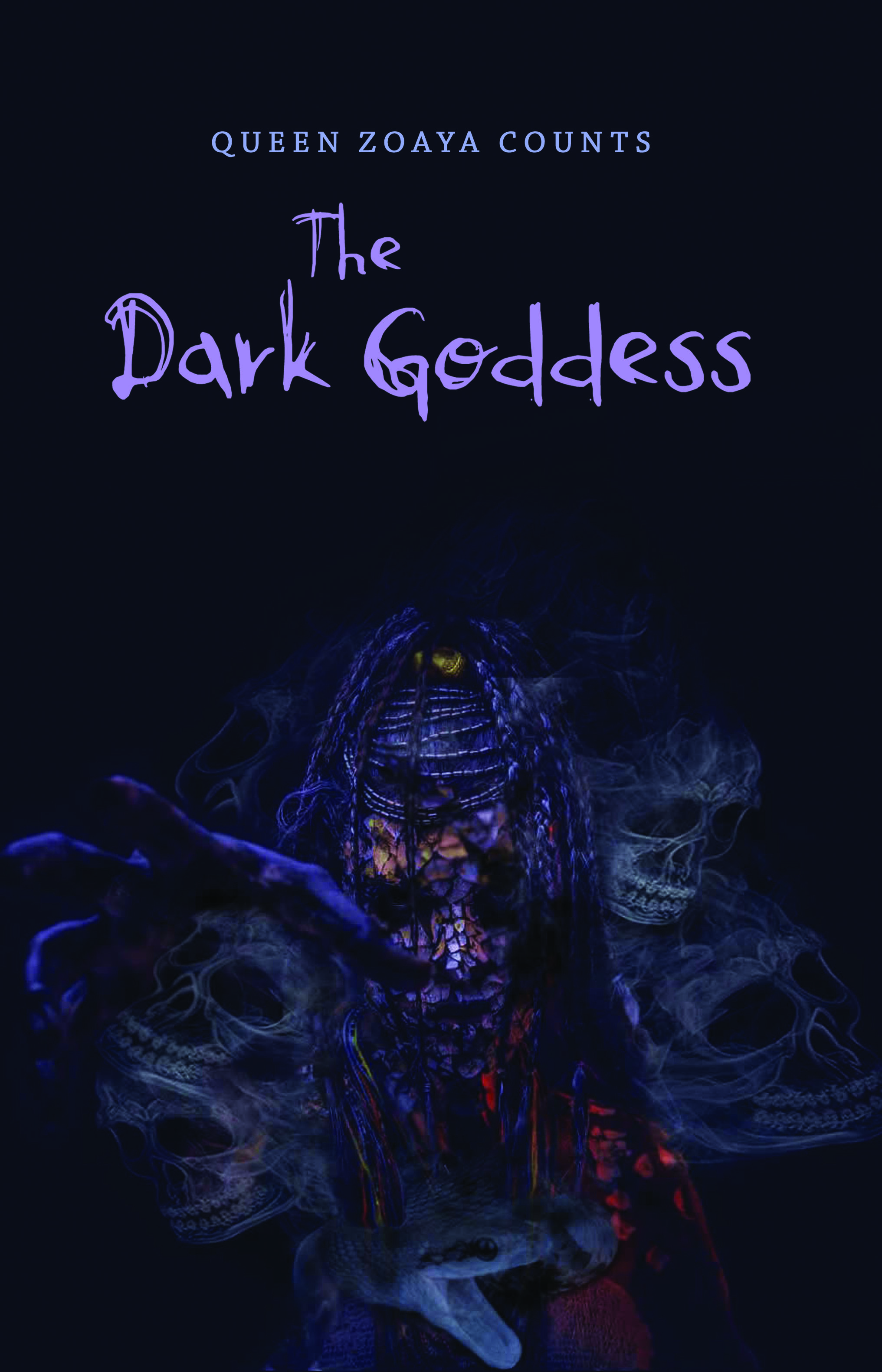 The Dark Goddess was inspired by the author’s love of snakes and her initiation in Voodoo. It is centered around the energy of the dark spirits and how they only want a chance to survive. She hopes to educate people and correct common misconceptions of Voodoo and its practices.
